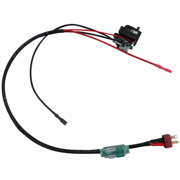 Der Einbau gestaltet sich recht simpel, da das Mosfet schon komplett verkabelt ist. Es muss lediglich der alte Abzugsschalter in der Gearbow entfernt und die neue Einheit eingebaut werden. Also kein lästiges Löten notwendig. Das Mosfet verfügt über eine integrierten Spannungsschutz, um zu vermeiden, dass das Mosfet durch BEMF (Back Electromotive Force) beschädigt wird, und wurde entwickelt, die Triggerreaktion zu erhöhen und gleichzeitig die erzeugte Wärmemenge zu reduzieren. Das Mosfet hat einen Deans T-Anschluss zur Reduzierung der Impedanz.