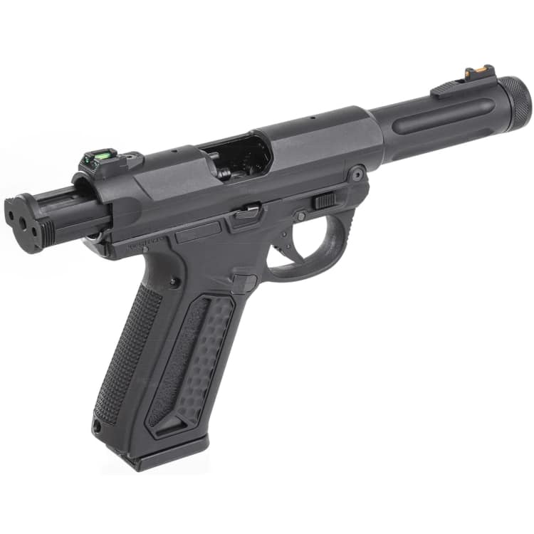 AAP01 ist eine Mischung aus der legendären Pistole im Ruger-Stil mit modernem Design und der Kompatibilität mit dem Magazin der G17-Serie. Der obere und untere Receiver besteht aus robustem Polymer mit Metalleinsätzen für funktionierende Teile.
