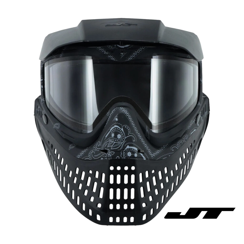 Die JT Proflex Maske gehört seit rund 20 Jahren zu den beliebtesten Modellen im Paintballmarkt. Egal ob aus Nostalgie-Gründen, oder weil sie einfach preiswert und praktisch ist, jeder mag die JT Proflex. Außerdem hat sie sehr gute Gläser zur Auswahl. Nun gibt es sie in mehreren, frischen Farbkombinationen mit dem beliebten Bandana-Design. Auch diese Modelle verfügen selbstverständlich über den flexiblen Mundschutz, der die JT Proflex so beliebt macht.