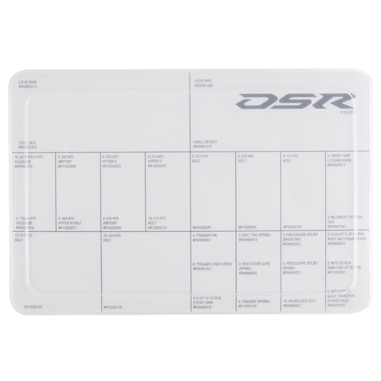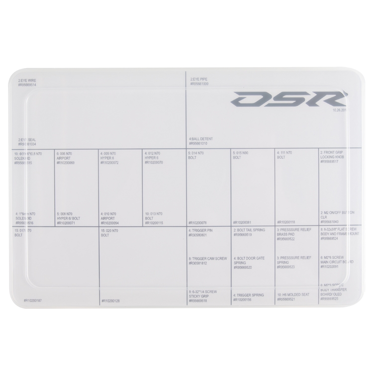 Zur schnelleren und einfacheren Reparatur der DSR bietet Dye bei diesem Modell viele Ersatzteile in Baugruppen an. So muss man als Spieler nicht mehr die grossen, teureren Ersatzteile kaufen, sondern kann gezielt das Bauteil, bzw. die Baugruppe ersetzen die kaputt gegangen ist. Ein echter Vorteil in Sachen Markiererwartung.