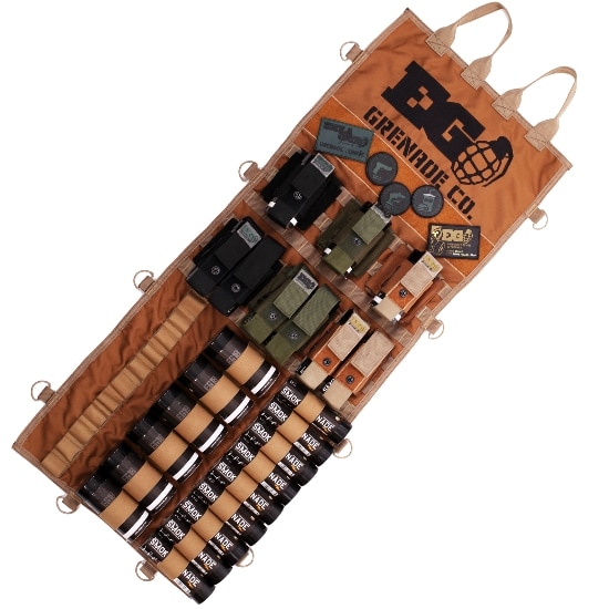 Im leeren Zustand lässt sich das Loadout kompakt zusammen wickeln. Im Inneren bietet es Platz für eine Vielzahl unterschiedlicher Enolagaye Granaten, unter anderem EG18, Wirepull, Friction usw.
