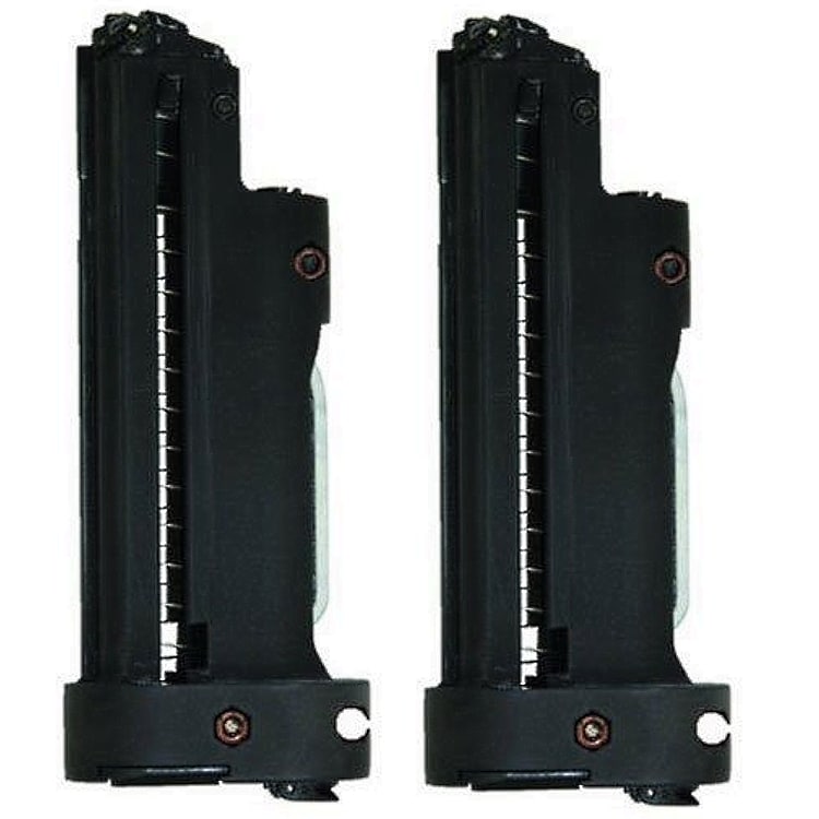 Im Lieferumfang sind 2 Magazine enthalten die jeweils 6 Schuss Munition fassen. Im Magazin ist außerdem das Treibmittel untergebracht. Hier kommt eine der grössten Veränderungen zum tragen, und zwar das neue Co2 Kapsel Format. First Strike hat von 12g auf 8g Co2 Kapseln gewechselt. Dies muss man als Spieler unbedingt wissen, da man die Pistole sond nicht benutzen kann. 8g Co2 Kapseln findet Ihr ab sofort aber selbstverständlich auch in unserem Sortiment.