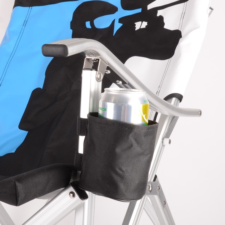 Passend zu unserem klappbaren Campingstuhl bieten wir euch einen Polyester Getränkehalter mit Klettbefestigung an. Dank des weichen Gehäuses passt sich der Halter überall an und kann dauerhaft am Stuhl befestigt bleiben.