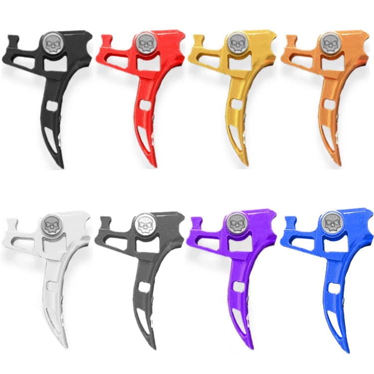Durch das integrierte Kugellager, ist der Trigger deutlich leichtgängiger als der serienmäßige abzug. Das erhöht die Feuerrate des Markierers und sorgt für ein angenehmeres und gleichmäßigeres Gefühl am Abzug. Diverse Verstellschrauben ermöglichen es außerdem den Abzugsweg genau auf die eigenen Wünsche einzustellen. Das schlanke Design mit zahlreichen Fräsungen und Materialausspaarungen ist außerdem auf maximale Leichtigkeit ausgelegt.