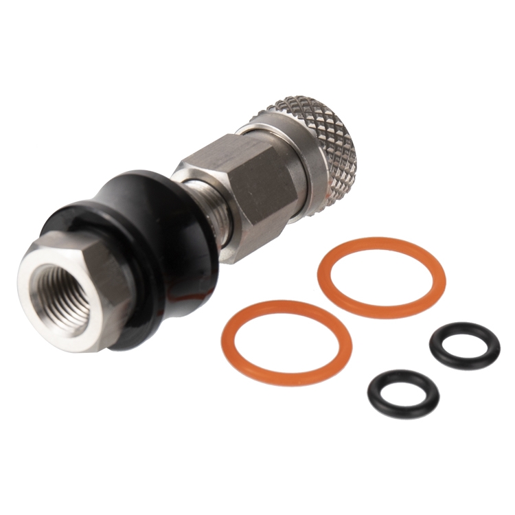 Das hier gelieferte Micro Slide Check besteht aus dem Entlüftungsventil mit On/Off, dem passenden Schnellverschluss für den ASA Adapter des Remote Systems, und einem O-Ring Ersastzteilset für die schnelle Reparatur im Falle von Undichtigkeiten und Verschleiß.