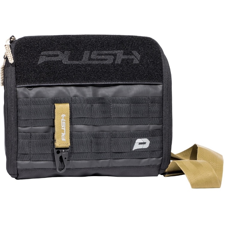 Paintball Markierer Tasche der Marke Push. Diese Tasche ist speziell für den sicheren Transport deines Paintball Markierers entwickelt worden. Sie bietet Platz für den Markierer, die Läufe sowie Werkzeug und Ersatzteile. Das Ganze lässt sich dann, dank der breiten Schlinge, bequem am Körper tragen.