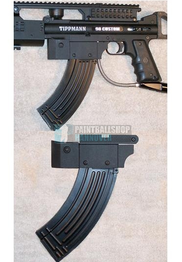 Das Magazin Kit in AK-47 Sturmgewehr Optik ist geeignet für deinen Tippmann 98 Paintball Markierer und verdeckt dessen Frontgriff.
