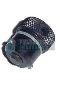 Die Tippmann TPX Co2 Cap für den Co2 Schnellwechselverschluss unterhalb des Laufs. Es handelt sich hierbei um die verbesserte Ausführung mit einer Verstellschraube zum besseren justieren der Co2 Kapseln.