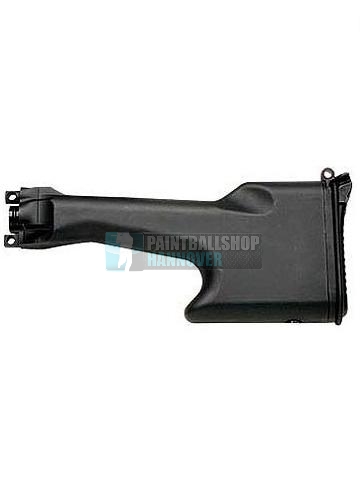 Tippmann X-7 Schulterstütze (SAW-Stock) Sehr robuste Verarbeitung. Ideal für alle Scharfschützen Modelle usw. Hergestellt aus einem nahezu unzerbrechlichen Plastikverbund. Das spart Gewicht und verhindert das Ansetzen von Rost. Durch den Anbau dieser Schulterstütze liegt die Tippmann X-7 beim schießen wesentlich ruhiger in der Hand, dies verbessert das Schussbild erheblich. Markierer nicht enthalten!