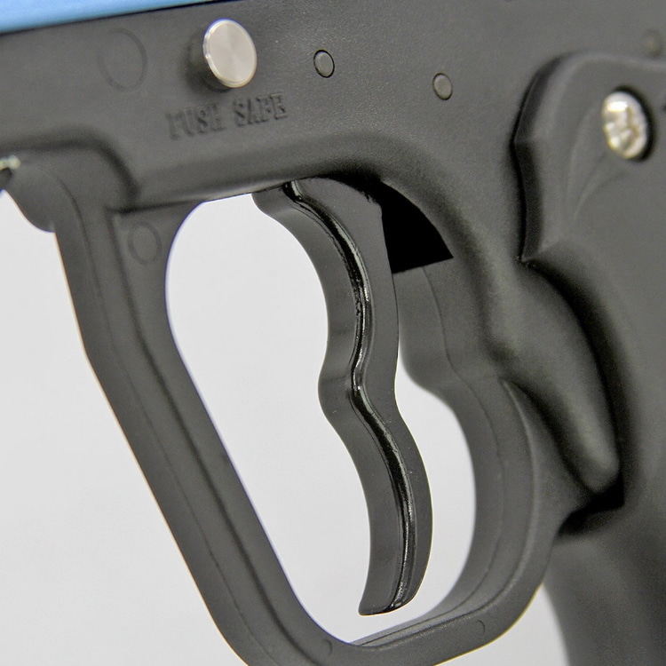 Serienmäßig verfügt die Razorback bereits bereits über ein paar interessante Upgrades wie ein Klemmfeed mit Schraubverschluss, einen 2-Finger Abzug (Double Trigger) und einen selbstschmierenden Delrin Bolzen.