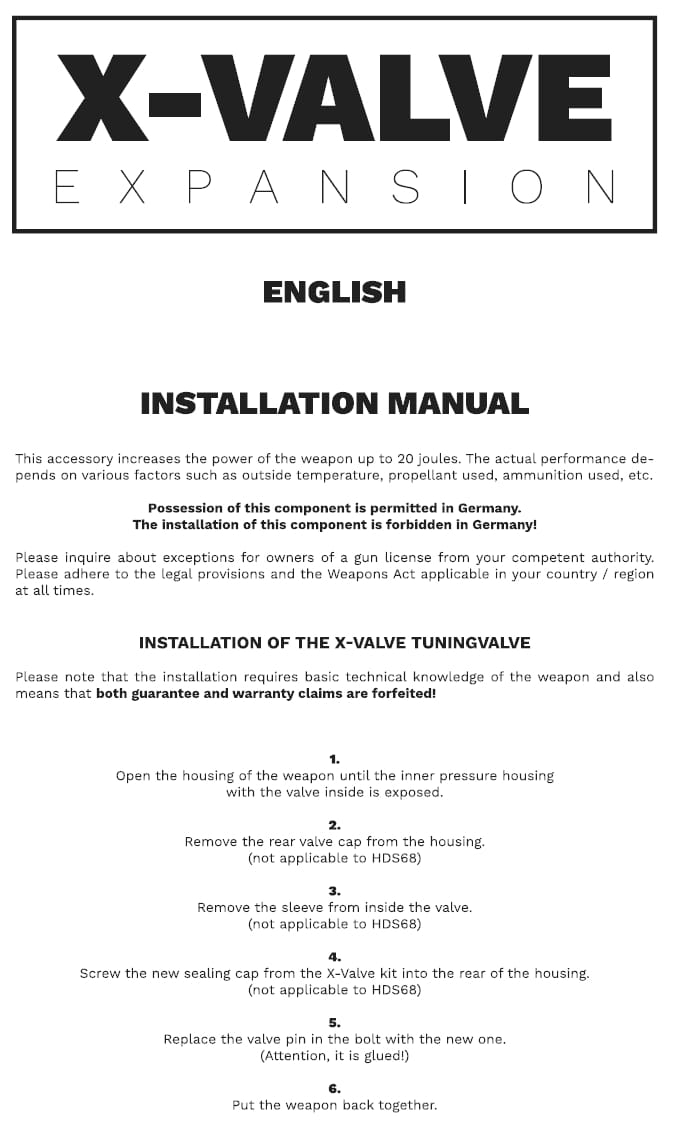 ACHTUNG – Nur passend für HDR50 Modelle mit Herstellungsdatum ab Mitte 2021. Erkennbar am roten Pin . – Die alten Modelle, welche bis Mitte 2021 ausgeliefert wurden, haben hingegen einen silbernen Pin mit rotem O-Ring der bei unter Druck stehender Waffe hinten aus dem Gehäuse ragt. Bei diesem Modell passt das X-Valve auf Grund veränderter Bauteile nicht.